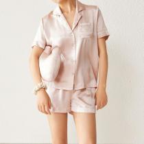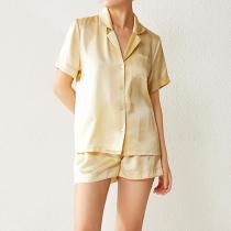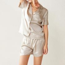 CONOAN亘诺昂 100%桑蚕丝19姆米真丝西装翻领短袖短裤套装