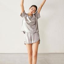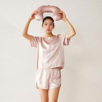 CONOAN亘诺昂 真丝圆领短袖短裤套装100%桑蚕丝家居服套装
