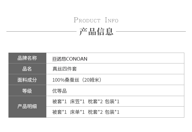 CONOAN亘诺昂 20姆米重磅有机全真丝桑蚕丝绸面料简约四件套套装